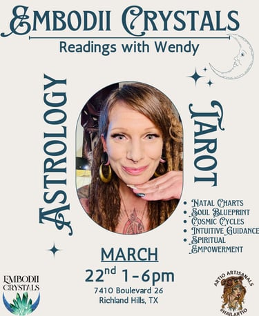 Wendy began the deep dive much later in life. While she always had a love for the stars and all things occult, she didn’t give it the time and attention until the tail end of her Saturn return in 2016. That is when she discovered the magic of crystals and that opened up the doors for the numerosus metaphysical rabbit holes to come